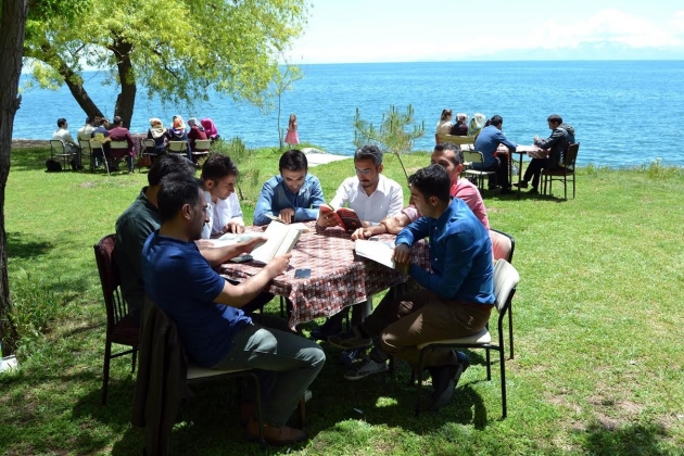 Bitlis merkez, Ahlat, Mutki, Hizan, Güroymak ve Tatvan’da stajlarını tamamlayan 130 aday öğretmen, Ahlat öğretmenevinde ağırlandı. Havanın güzel olmasından faydalanan öğretmenler, Van Gölü kıyısında bulunan Ahlat Öğretmenevi’nin bahçesinde kitap okumanın keyfini yaşadılar. 130 aday öğretmenin iştirakiyle yaklaşık iki saat süren kitap okuma etkinliğinin ardından çeşitli ikramlar yapıldı.