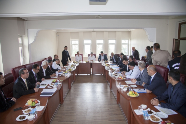 Toplantıda, Başbakanlığın talimatları doğrultusunda Ahıska Türklerinden 72 ailenin Ahlat’a yerleştirilmesiyle ilgili konu gündeme alındı. Bitlis Valisi Ahmet Çınar başkanlığında düzenlenen toplantıya Ahlat Belediye Başkanı A. Mümtaz Çoban ve Ahlat Kaymakamı Bülent Tekbıyıkoğlu ev sahipliği yaparken, toplantıya Vali Yardımcısı Kamil Güzel, Bitlis İl Emniyet Müdürü Fatih Kaya ve Bitlis'te görev yapan bazı kurum müdürleri katıldı. Ahlat’a yerleşecek Ahıska Türklerinin iskanı hakkında da bilgiler veren Ahlat Belediye Başkanı A. Mümtaz Çoban, 72 ailenin ilçeye yerleştirilmesiyle ilgili 2'inci toplantının gerçekleştiğini belirterek, "Geçmişin ihtişamlı medeniyet merkezi Kubbetül İslam Ahlat, İslamların nerede mağduru ve mazlumu varsa bağrına basmış Ahlatlılarda Ensar vazifesi görmüşler. Bugün böyle tarihi bir mesuliyeti gerçekleştirmek üzere Ahlat Belediyesi’nde Valimiz Sayın Ahmet Çınar Beyefendi başkanlığında, tüm il müdürlerimize İlçe Kaymakamımız Sayın Bülent Tekbıyıkoğlu Beyefendiyle ev sahipliği yaparak çalışmalarımızı anlattık. Ukrayna’da mağdur olan Ahıskalı kardeşlerimizin Başbakanlığımız tarafından alınan kararla Ahlat ve Erzincan'a yerleştirilme çalışmalarında son noktaya gelindi. Dün Türk'üne Arap’ına, Çerkez’ine, Kürt’üne ev sahipliği yapan bu mübarek ve emin belde, bugün Ahıskalı kardeşlerimize de aynı sıcaklığı gösterecektir. Nüfus inşallah Ahlat’ı yeniden cazibe merkezi yapan unsurlardan biri olacaktır” dedi.