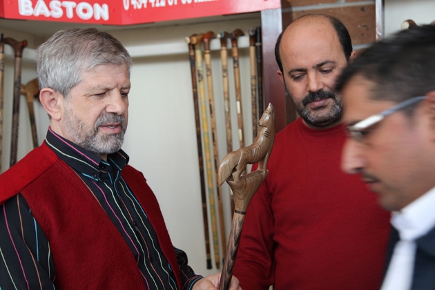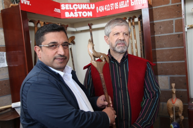 Prof. Dr. Ahmet Maranki, ilçemizde baston atölyesini ziyaret ederek baston ustası Refa Gökbulak’tan Ahlat bastonu hakkında bilgi aldı. Prof. Dr. Ahmet Maranki baston ustası Refa Gökbulak’a önerilerde de bulunarak, Selçuklu kartalını bastonlarına işleyip tanıtırken, Osmanlı'nın çınarını da bastonlarına işlemesini önerdi.Prof. Dr. Ahmet Maranki, ilçemizdeki tarihi ve doğal güzellikleri gezdi. İlçemizin tarihi ve doğal güzelliklerini oldukça beğenen Maranki, daha sonra sosyal medya hesabı üzerinden de Ahlat ile ilgili izlenimlerini on binlerce takipçisiyle paylaştı. Ardından Ahlat’ın el sanatlarından olan baston atölyesini ziyaret etti.Maranki Baston atölyesinde yaptığı açıklamada; “Burası tarihin harmanlandığı bir yer. Tabi ki baston bizim Türk töremizde, İslam kültüründe, daha sonraki yıllarda da çok önemli yeri var. Hem camilerimizde hem mihraplarımızda bunlar çok kullanılmış. Entelektüel hayatımız da da bastonun çok önemli yeri var. Kültürde çok önemli yeri var. Bunlar kullanılmış. Asilzade insanlar bastonu kullanmışlar. Selçuklu bastonunu da hem sultanların hayatında hem de medrese hayatında kullanıldığını görüyoruz. Bu bir simgedir, tarihtir, kültürdür. Mutlaka bu baston kültürünün de yaşatılmasından yanayım. Böyle bir mirası günümüze taşıdığı için değerli kardeşime teşekkür ediyorum. Tabiki bunu yaparken aslına sadık kalmak lazım. Gelecek nesillere asıllarını göstermek lazım. İşte Selçuklunun kartalını tanıtırken Osmanlının çınarını da tanıtmak lazım. Üç hilalimizi de tanıtmak lazım. Selçuklu döneminden gelen içe bakan üç hilallerle hem de farklı fonlarıyla yine gelecek nesillere baston kültürünün içinde taşınacağını düşünüyorum” dedi.KÜLTÜRÜMÜZDE OLAN MOTİFLER BASTONLARA İŞLENSİNMaranki, yöremizdeki ceviz ağaçlarının varlığına da dikkat çekerek, eski camilerde ve kültürümüzde olan motiflerin de bastonlara işlenerek yaşatılması ve gelecek nesillere bırakılacak büyük bir miras olduğunu da belirterek konuşmasına şöyle devam etti;.“Eskiden bastonlar sedirden yapılırdı. En uzun ömürlü ağaç sedirdir. Beş bin yıllık ağaç olduğu söylenmektedir. Türklerin gizemli ağacıdır. Büyük camilerde, Endülüs de bile. Bugün saraylarda El Hamra'da kalan bir takım yerler varsa bunlar sedir ağacından olan yerler. Yine Kastamonu'da Selçuklu döneminden kalan bin yıllık Alpaslan'dan önce kalan camiler var. Bu camilerin hepsinde sedir ağacı ve ceviz kullanılmıştır. Oyma sanatında, baston sanatında ceviz ağacı kadim ağaçlardandır. İki bin yıllık tamamen bozulmayan, deforme olmayan ağaçlar baston kültüründe kullanılarak ve bunun üzerine de mutlaka eski camilerde ve kültürümüzde olan motiflerin işlenerek yaşatılması, gelecek nesillere büyük bir mirasdır diye düşünüyorum” dedi.Kozmik bilim ve Stratejik Araştırmalar Uzmanı Prof.Dr. Ahmet Maranki,Tatvan Ticaret ve Sanayi Odası Başkanı Bilal Dağdağan’ın girişimleri sonucu Bitlis’te gezi incelemeler yaptı. Bitlis’in tarihi ve doğal güzelliklerini ise kamuoyu ile paylaştı.