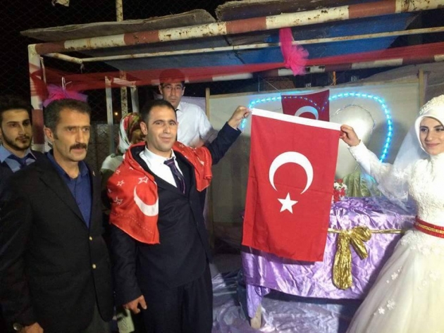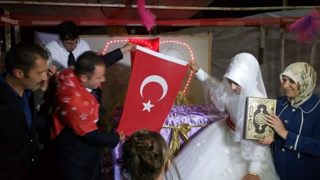 Düğünlerde Kur’an-ı Kerim ve Türk Bayrağı geleneğini sürdürüyorlar