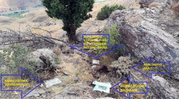 Bitlis Valiliğinden yapılan açıklamada, Tatvan’a bağlı Küçüksu Jandarma Karakol Komutanlığı sorumluluk bölgesinde yer alan Tokaçlı Köyü Mirgataş Tepe mevkiinde toprağa gömülü vaziyette 2 kiloluk piknik tüpü ve 2,5 kilo zeytin tenekesi içerisine gizlenmiş amonyum nitrat karışımı ve inorganik madde olduğu değerlendirilen 8’li pil bloğuyla hazırlanmış birbirine bağlantılı basma düzenekli yaklaşık 25 kiloluk EYP bulunduğu belirtildi. Açıklamada, “El yapımı patlayıcı madde, cumhuriyet savcısının talimatı ile olay yerinde imha edilmiştir. Bitlis İl Jandarma Komutanlığınca, sorumluluk bölgemizde bulunduğu değerlendirilen teröristlerin tamamı etkisiz hale getirilinceye kadar, zaman mefhumu gözetmeksizin her türlü hava koşullarında aralıksız olarak operasyonlara kararlılıkla devam edilecektir” denildi.