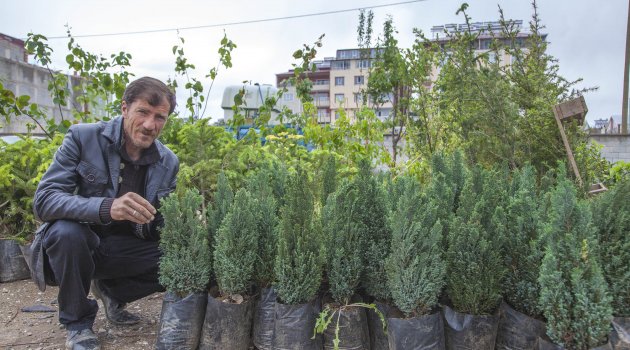 Bitlis'in Ahlat ilçesinde hava sıcaklıklarının artmasıyla birlikte Ali Rıza Çağlar tarafından satılan bir yıl garantili fidanlar ilgi görüyor.