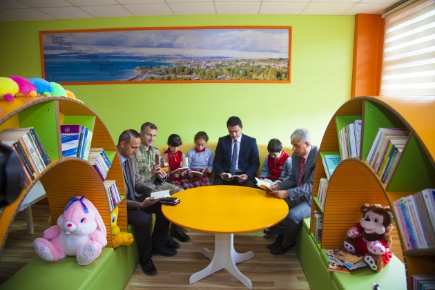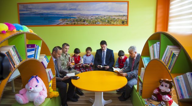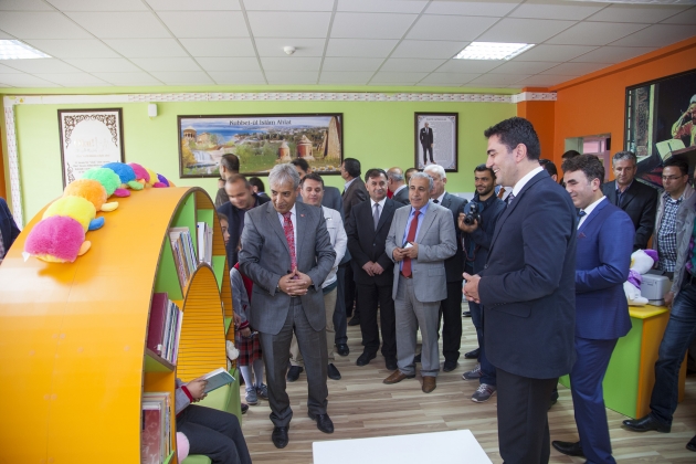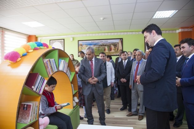Kütüphanenin açılışı ise rahmetli Rahmi Gökbulak'ın oğlu, okulunda 4'üncü sınıf öğrencisi olan Yavuz Selim'e yaptırıldı. Yunus Ensari İlköğretim Kurumu’nda Z-Kütüphane (Zenginleştirilmiş Kütüphane) açıldı. Açılan kütüphaneye ilçe ve okul eğitimine büyük katkıları bulunan ve geçtiğimiz aylarda vefat eden kurucu müdür Rahmi Gökbulak’ın ismi verildi. Z-Kütüphanenin açılış programına Ahlat Kaymakamı Bülent Tekbıyıkoğlu, Garnizon Komutanı Yüzbaşı Ahmet Zafer Bayram, Emniyet Müdür Vekili Erdem Yaban, İlçe Milli Eğitim Müdürü Mutluk Özden, kütüphaneye ismi verilen Rahmi Gökbulak’ın ailesi ve yakınları ile bazı kurum amirleri katıldı. Açılış öncesi kurulan Z-Kütüphane hakkında okul müdürü Metin Ataş tarafından bilgiler verildi. Ataş; “Okulumuzun ilk müdürü olan rahmetli Rahmi Gökbulak adına hazırlamış olduğumuz Zenginleştirilmiş Kütüphanemizin açılışını yapmak için burada bulunuyoruz. Okulumuzda büyük emekleri geçen Rahmi hocamızın ismini yaşatmak için kurmuş olduğumuz kütüphaneye ismini verdik. Kütüphanenin kurulmasında Ahlatlı işadamı Yunus Ensari bey olmak üzere, okul aile birliği yönetimi ve değerli velilerimiz destek verdiler. İstanbul’da bir firma ile temasa geçtik. Ölçüleri gönderdik, tasarımını beraber yaptık ve güzel bir kütüphane ortaya çıktı. Burada sadece amaç kitap okumak değil, öğrenciyi bu tür ortamlara çekebilmek. Dışardaki internet kafelerden, kötü ortamlardan güzel ortamlara çekebilmek. Tasarımıyla, donanımıyla çok güzel bir kütüphane oldu. Bitlis ilinde ilk kez yapılan bir kütüphane oldu. Hayırlı uğurlu olmasını diliyorum” dedi. Daha sonra kısa bir konuşma yapan Ahlat İlçe Milli Eğitim Müdürü Mutluk Özden ise; “Zenginleştirilmiş Kütüphaneler Milli Eğitim Bakanlığı’nın “Okullar Hayat Olsun” projesi kapsamında daha kapsamlı sadece kitap değil, günümüz teknoloji çağında öğrencileri sadece kitaba bağlı kılmanın yanı sıra böyle bir ortamlardan da faydalanmalarını sağlama, onların kitap okumanın cazip ve standardı yüksek olan kütüphanelerde toplamayla daha da iyi olacağı düşünülerek de uygulanan bir projedir. Bu kütüphane sadece öğrencilere yönelik değil, eğitim-öğretim dışında da velilerimize de istemeleri halinde saat: 21.00’a kadar da buradan faydalanabilirler. Bu kütüphanenin kurulmasında emeği geçen başta Ahlatlı işadamımız Yunus Ensari’ye, okul aile birliği yönetimine, saygıdeğer velilerimize ve bizleri hiçbir zaman yalnız bırakmayan sayın kaymakamımıza huzurlarınızda teşekkür ediyorum” diye konuştu. Son olarak konuşma yapan Ahlat Kaymakamı Bülent Tekbıyıkoğlu ise, toplumda güzel hizmetler yapmış, kalıcı eserler bırakmış kişilerin isimlerinin yaşatılması amacı ile yapılan bazı eserlere isimlerinin verildiğini kaydederek; “Biz kamu hizmetinde bulunanlar genelde görev yaptığımız zaman içerisinde yöneticilerin, kamu hizmeti verenlerin isminin bir yere verilmesinin uygun görmeyenlerdenim. Bir yere gidiyoruz bakıyoruz kimileri kendi kaymakamlığı zamanında oraya bir şey yaptırmış fakat kendi ismini bir şekilde yanındaki çalışanları, sevenleri, arkadaşları bunu teklif etmişler veya okul müdürleri veya öğretmenler yaptırdığı şeye kendi ismini verdirmiştir. Fakat bu her ne kadar sevgi göstergesi olsa da gerçek sevgi müdür, daire amiri, kaymakam, vali, ilçeden, ilden,veya okuldan ayrıldığı zaman eğer ismi veriliyorsa işte o zaman bir kıymet verilmiş demektir. İşte bizimde geçen aylarda Rahmeti İlahiye kavuşmuş olan Gökbulak ailesinin ferdi Rahmi Gökbulak hocamız böyle bir sevgiye mazhar olmuş ki ondan sonraki gelen okul yöneticileri, komşuları, arkadaşları, okul velileri, öğretmenleri onu düşünüp ismini böyle bir kütüphaneye verme lütfunda bulunmuşlar, gerçek sevgilerini göstermişler. Gerçekten takdir edilmesi gereken kıymetli olanda budur diye düşünüyorum” dedi. Z-Kütüphanelerin (Zenginleştirilmiş Kütüphane) önemi hakkında da konuşan Kaymakam Tekbıyıkoğlu sözlerini şöyle sürdürdü; “Biz görevimiz icabı veya görevimizin haricinde yurt dışında bulunduğumuz zaman, üniversitelerde çalıştığımız zaman gördük ki kütüphaneler aslında akşam geç vakitlere değil, sabahlara kadar işleyen bir kurum. Bizde hala bu vaziyette değil. Ama bu Z-Kütüphanesinde buranın ulaşılabilir kılınmasındaki bu emekler gerçekten sevindirici. Ben üniversitede okurken bile kütüphaneler sabah 9’da açılırdı, akşamları 5’te kapanırdı. Bu uygulama halende yaygın. Bu ne demek aslında öğrenci gelmesin demek. Devlet memuru kütüphaneye girmesin demek. Hepimiz sabah 8’de mesaiye başlıyoruz akşam 5’te mesaiyi tamamlıyoruz kütüphaneye gidip kitap okuyacağız, belki bir araştırma yapmamız gerekiyor, belki bir çalışma yapıyoruz veya böyle bir zevkimiz var. Ama bu imkanlar bize kapanıyor. Ama bu kütüphanemizin 21’e kadar açılmasını çok önemli görüyorum. Çünkü bilgiye ulaşmak isteyen insanlar için bir imkan sunulmuş oluyor. Öğrencilik zamanımda kütüphaneye gittiğimiz zaman gri gri binalar, koyu kahverengi binalar. İnsanları soğutan, ürperten, kitaptan uzaklaştıran kurumlar vardı. Öğrencilik yıllarında bir dönem ödevi münasebetiyle Ankara İl Halk Kütüphanesi’ne gitmiştik. Belli bir yere oturduk, belki görevlilerin yüzü bize biraz soğuk geldi, bina zaten soğuktu. Kütüphanedeki bilgileri almamızla, fotokopileri çekmemizle kütüphaneden çıkmamız bir oldu. Biz çocuklarımızı gelecek yüzyıllara hazırlamak istiyoruz. Bunların donanımlı olmalarını, çağın gerekleriyle tesisatlanmalarını istiyoruz. Bunu bir şekilde yapacağız. Ama bu elbette ki zorla olmayacak, bilgiyi sevdirerek, 