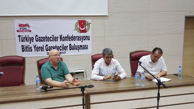 Türkiye Gazeteciler Konfederasyonu (TGK) Genel Başkanı Nuri Kolaylı, Basın İlan Kurumu Anadolu Gazete Sahipleri Temsilcisi Mustafa Arslan ve Konya Gazeteciler Cemiyeti Başkanı Sefa Özdemir, Bitlis’te yerel basının sorunlarını dinleyerek, son gelişmeler hakkında bilgi verdi.