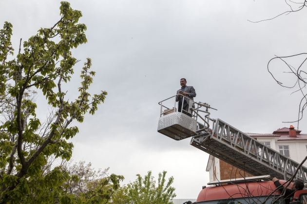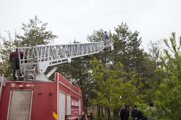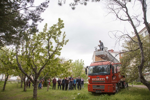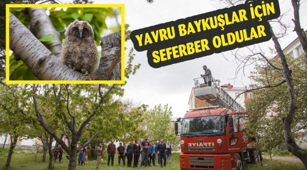 Bitlis'in Ahlat ilçesinde ki bir okulun bahçesine yuvasından düşen yavru baykuşları yerine bırakmak için ekipler seferber oldu.